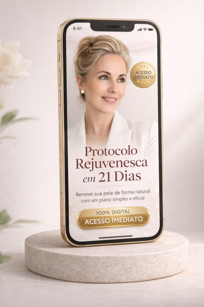 Com o Protocolo Rejuvenesça em 21 Dias, você aprende um passo a passo simples para suavizar sinais da idade, recuperar a firmeza visual da pele e conquistar uma aparência mais cuidada e valorizada.